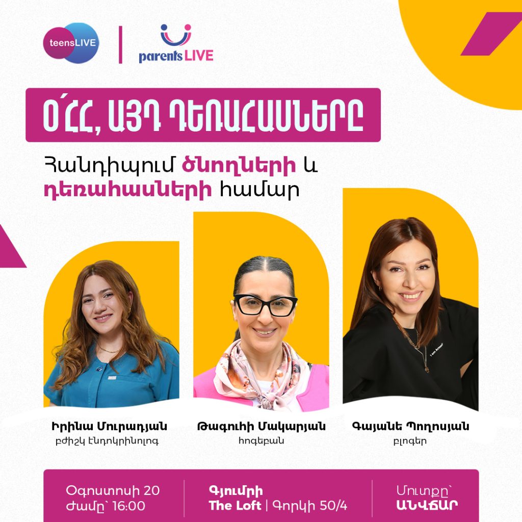 Մեր parentsLIVE.am կայքի, Facebook և Instagram հարթակների միջոցով ծնողները հնարավորություն ունեն օգտակար և հավաստի տեղեկատվություն ստանալ դեռահաս երեխայի ֆիզիկական և հոգեկան առողջության պահպանման վերաբերյալ։
